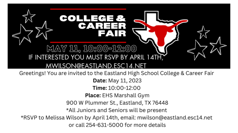 May 11th, 10:00-12:00. Please RSVP mwilson@eastland.esc14.net by April 14th if you are interested.