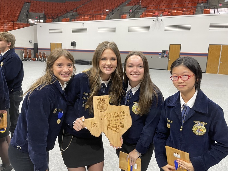 The Eastland Farm and Agribusiness Management Team - Savanna Koroch, Angel Li, Jaci Darr and Micayla Henry - won the State FBM contest on Friday, and will compete next fall in Denver at the National Contest! Savanna was 2nd High individual in the state, Angel 8th high, Jaci 11th high and Micayla 17th high.