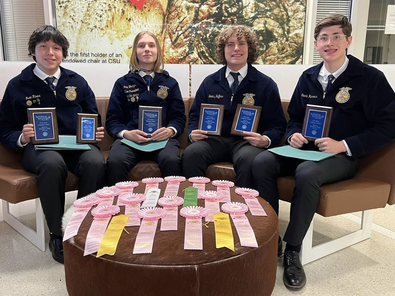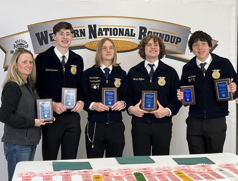 Eastland ISD and Eastland FFA would like to congratulate the National Western Reserve Champion Meats Evaluation Team! Texas sends one school's FFA team to the contest to represent the state. Eastland FFA represented Texas well. Team members include Cole Bridges, Ivan Rivas, Jacob Harrower, and Bentley Huffman. Several of the team members earned top ten overall individual awards. Ivan was third high individual, Cole was sixth high individual and Jacob was eighth high individual. The boys are looking forward to this upcoming judging season.
