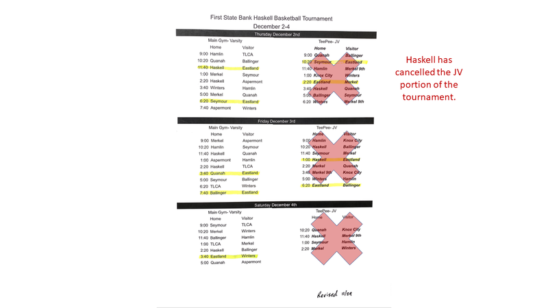 Haskell Basketball Tournament Schedule
