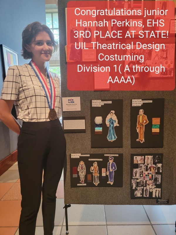 Congratulations to EHS OAP for earning 1st place at zone competition and to Hannah Perkins for earning 3rd place in Theatrical Design Costuming at state.