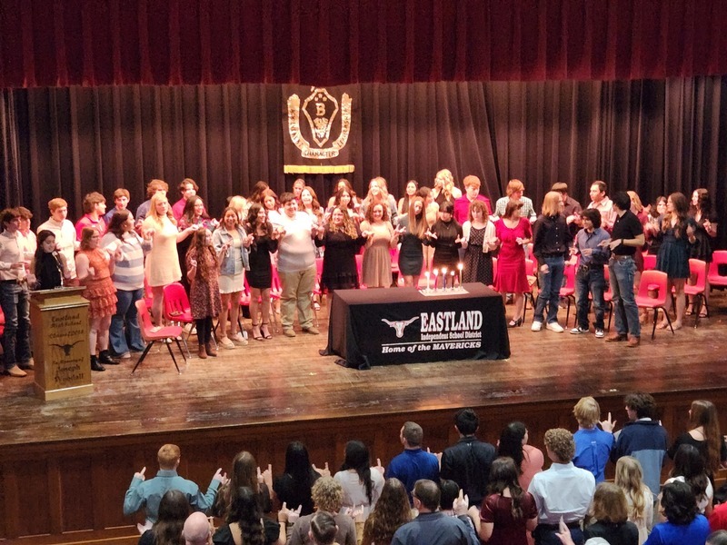 Congratulations to our Beta Club’s newest members! 35 new inductees joined Eastland’s chapter of the Beta Club today, bringing the current number of members to 81. To be eligible to join the Beta Club, sophomores must have a cumulative average of 93 or above. To maintain membership, members must keep a high overall average, and perform 5 hours of service for the school or community each year.